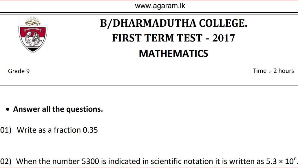 Term Exam Papers in Grade 09